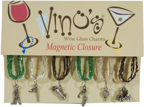#1Vino's Golf Outing Magnetic Wine Glass Charms, Set of 6