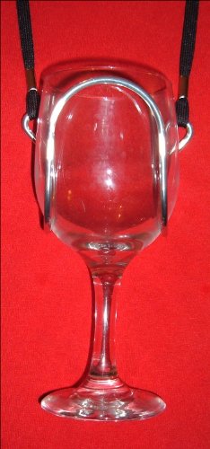 WINE GLASS NECKLACE This Wine Glass Necklace will hold a glass of wine at a party, festival, art show, freeing your hands to hold a fork and plate, shake hands, gesture, etc. The Wine Glass Holder can be widened or tightened over and over again to accomodate most sizes of wine glasses. (glass not included.)Low price but high quality product. Put the Wine Glass Necklace lanyard around your neck, insert an empty wine glass into the Wine Glass Necklace and hold the wine glass while adding wine.
